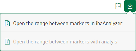 If the markers are set, you can transfer the time range between the markers to ibaAnalyzer for detailed analysis. Tapping on the download icon in the header of the diagram tile shows the following options: