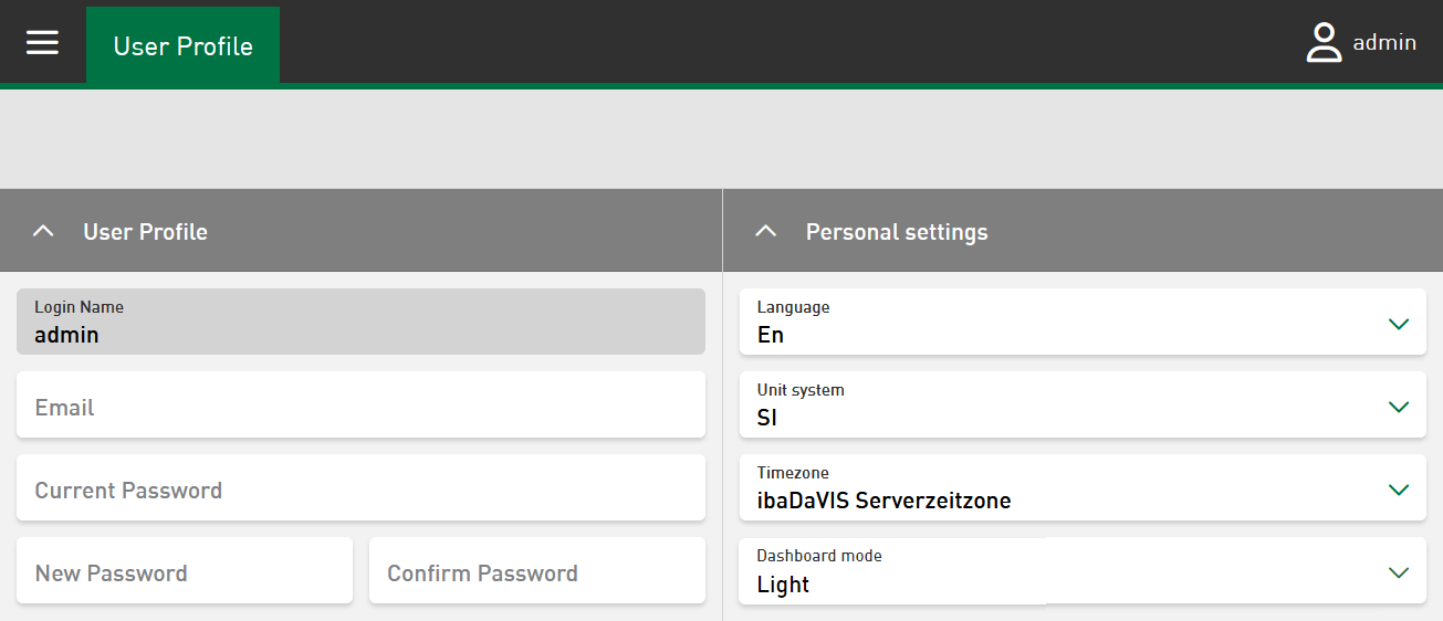 Selection between the “Light” and “Dark” mode. The setting currently affects the dashboards, settings, and login page.