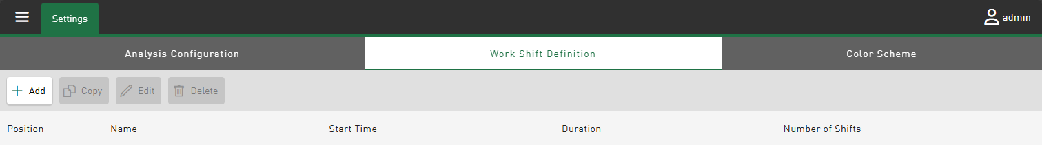 With the additional Work Shift Definition time filter you can easily enable or disable a specified work shift. In this way, you reduce the displayed data to a selected time period. All defined work shifts together cover a maximum of 24 hours.