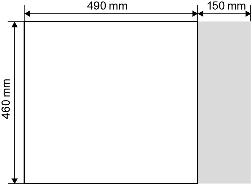 Wenn Sie das Gerät einbauen, dann beachten Sie die Mindestbiegeradien der Kabel und Leitungen. Die Montagefreiheit muss mindestens 150 mm zur Rückwand betragen.