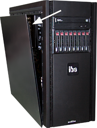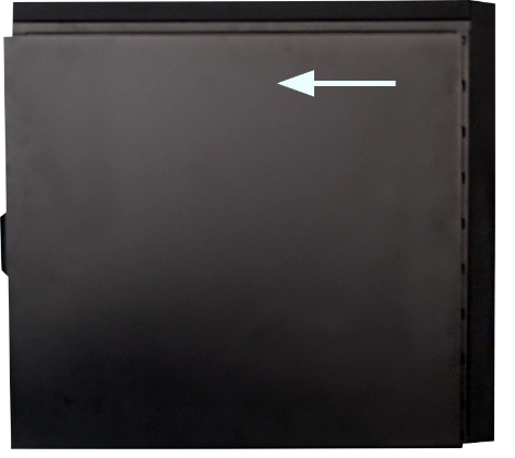 Lösen Sie auf der Geräterückseite die beiden Schrauben, die die Seitenwand fixieren.
