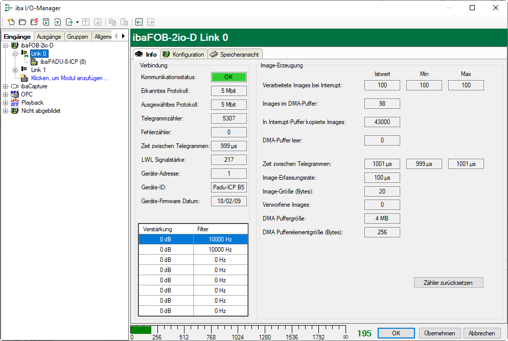 Verstärkungs- und Filterfaktoren werden im Gerät eingestellt. Dies betrifft nur die Geräte ibaPADU-8-ICP.