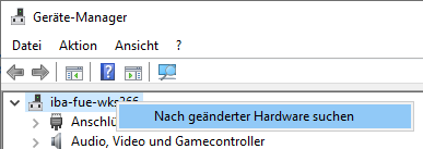 Sollte die Karte nicht automatisch erkannt worden sein, führen Sie im Geräte-Manager die Funktion Nach geänderter Hardware suchen aus.