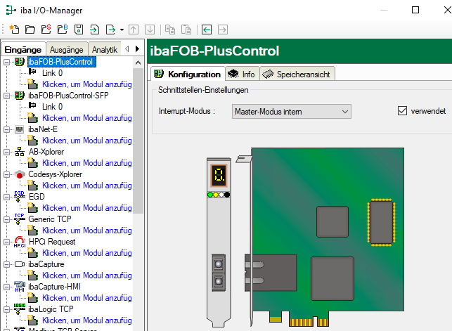 Wenn die Karte korrekt eingebaut wurde, wird sie als Schnittstelle in der Baumstruktur des I/O-Managers angezeigt.