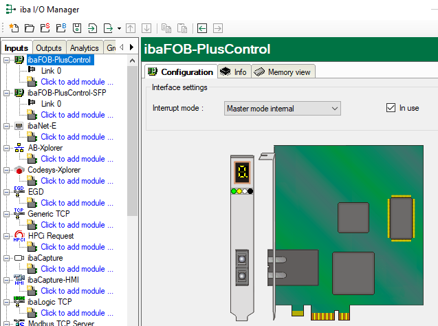 If the card has been installed correctly, it is displayed as an interface in the tree structure of the I/O Manager.