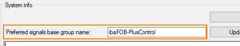 Groups are automatically created for preferred signals in the I/O Manager. You can enter a group name in the text box at the bottom of the tab. Default name is "ibaFOB-PlusControl".