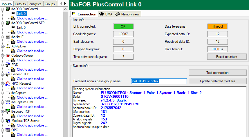 ibaPDA monitors the telegram counter of the measurement data telegrams. If the counter does not change within the timeout calculated according to the cycle time, the data is set to 0.