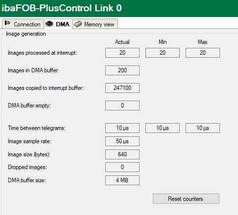 This counter shows how many images have been retrieved from the DMA buffer and have been processed by ibaPDA. This counter should count up continuously.