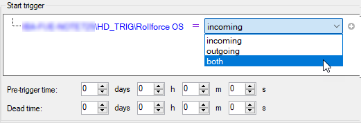 Specify the event and also whether the condition is fulfilled when the trigger is received, goes out or both.