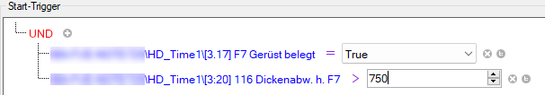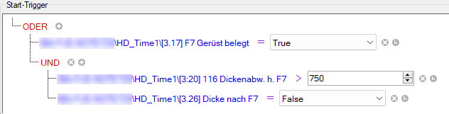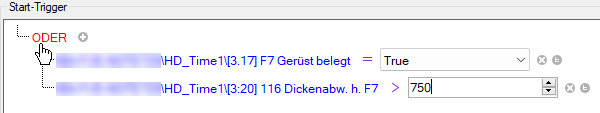 Mit der UND-Verknüpfung müssen beide Ausdrücke "True" sein, damit der Trigger auslöst. Wenn Sie wollen, dass der Trigger bereits auslöst, wenn nur eine Bedingung erfüllt ist, klicken Sie auf das rote UND, um auf die ODER-Verknüpfung umzuschalten.