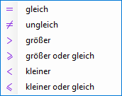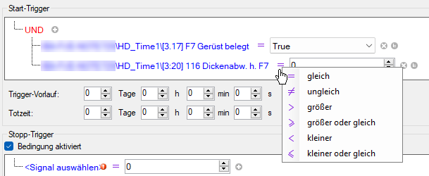 Klicken Sie auf das Operatorzeichen und wählen Sie die Operation aus, bei einem Digitalsignal z. B. gleich oder ungleich.