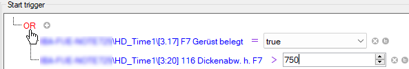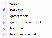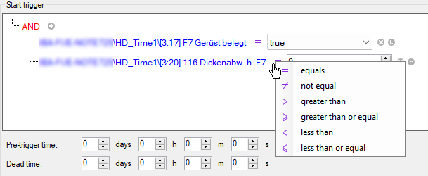 Click on the operator symbol and select the operation, e.g. equal or unequal for a digital signal.