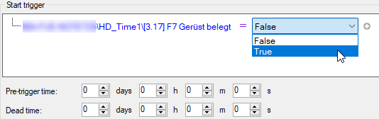 Select a comparison value, e.g. "True" for a digital signal.