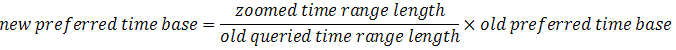 During a drill-down, the time range and timebase are recalculated according to the set zoom level and the data is requested from the HD server accordingly.