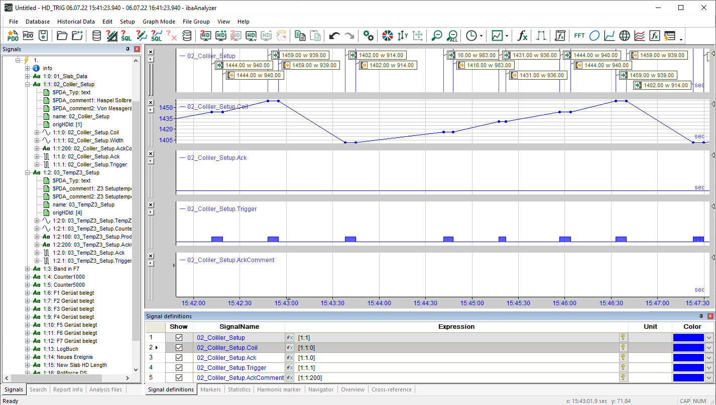 Similarly to ibaPDA, you can also use the event table for HD data in ibaAnalyzer .