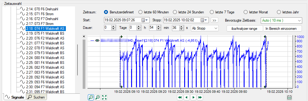 Im Signalbaum wählen Sie die Signale, für die Sie die Zeitauswahl durchführen wollen.