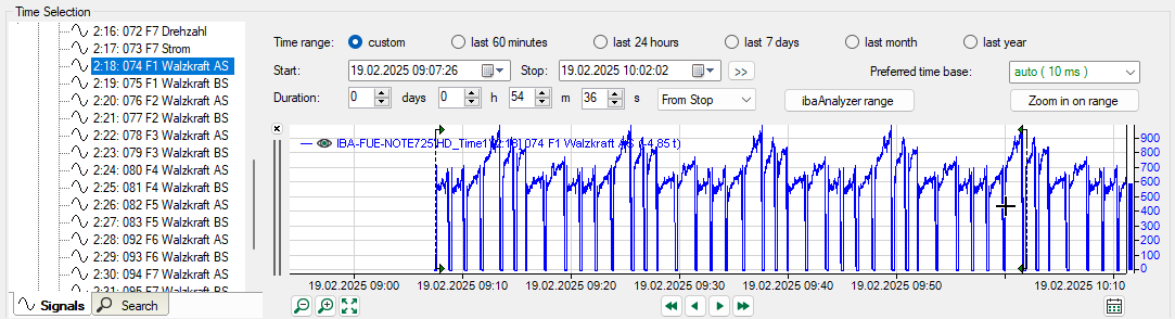 If you click on the [>>] button to the right of the date field of the stop marker, the stop marker is automatically positioned at the current time and the signal values currently available in the HD store are loaded.