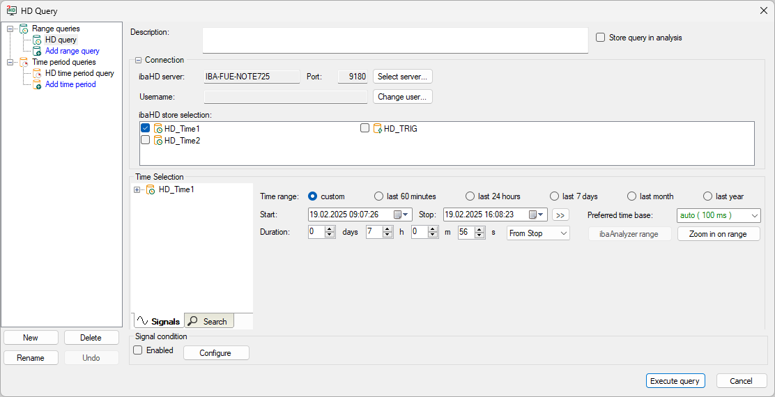 Once you have completed these settings, select the time range, see Time selection for the HD query.