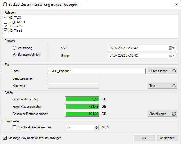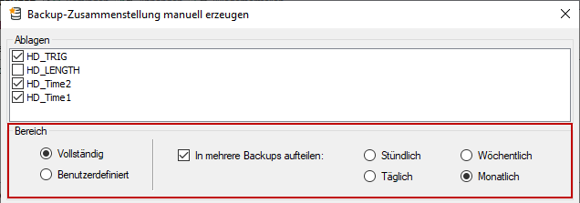 Nehmen Sie im Dialog Backup-Zusammenstellung manuell erzeugen die nötigen Einstellungen vor.