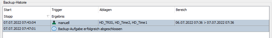 Wenn das Backup beendet ist, wird es darunter im Bereich Backup-Historie angezeigt.