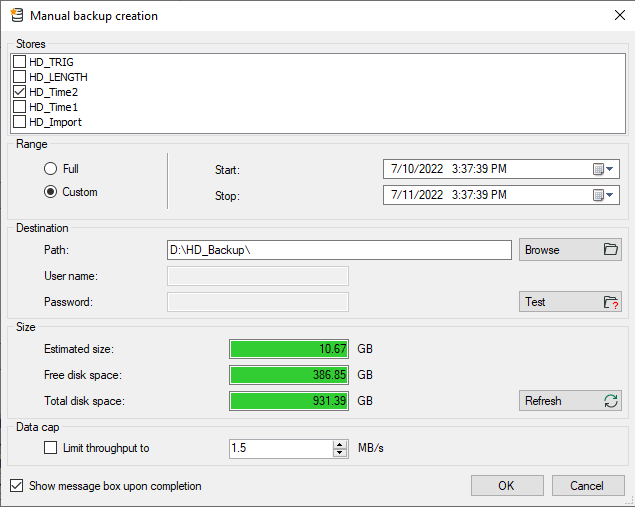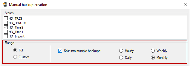 Select whether the backup is to be complete or whether only a defined time range should be saved.