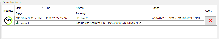 The progress of the backup is shown in the Create tab in the Active backups area.