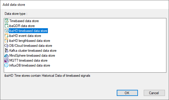Having selected the command "Add data storeā¦" highlighted in blue in the tree structure on the left side, a window opens where you can select the data store type.