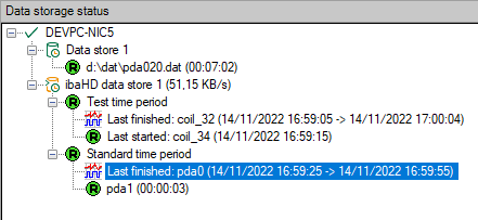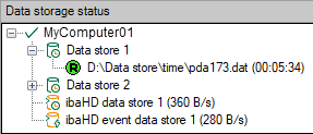 On the Data storage status range, the status of the HD data stores is displayed and which data volume is currently being written on the ibaHD-Server.