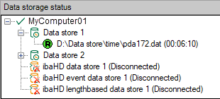 If the connection between the HD data store and the ibaHD-Server is interrupted, this will be displayed by a status accordingly modified.