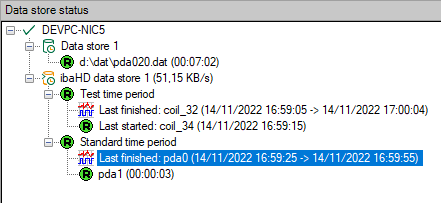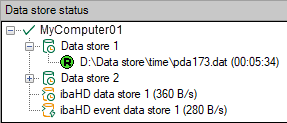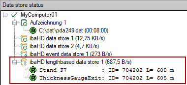 On the Data storage status range, the status of the HD data stores is displayed and which data volume is currently being written on the ibaHD-Server.