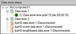 If the connection between the HD data store and the ibaHD-Server is interrupted, this will be displayed by a status accordingly modified.