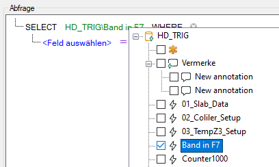 Wählen Sie die gewünschte Abfrage aus der Liste.