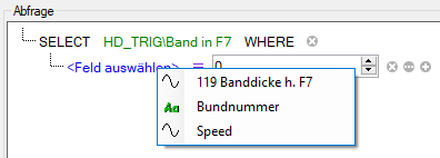 Hinter den Elementen der Abfrage befinden sich verschiedene Buttons mit denen die Abfrage erweitert oder verändert werden kann: