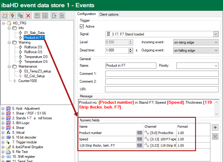 The numeric fields are available in the HD signal tree under the event node.