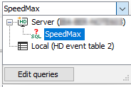 Selection list for selecting the desired event query. If you expand the list field, you can see all existing event queries and select the one you want. If you click on the <Edit queries> button, the configuration dialog for queries opens. You can then edit existing queries or create new ones. |