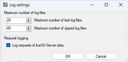 Here you can change the number of saved log files and specify whether all data requests to the HD server should be logged.