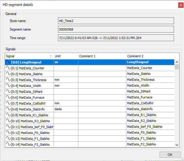 If you point the mouse on a segment row in the detailed view of an HD store, then a blue icon will appear on the outer right-hand side.