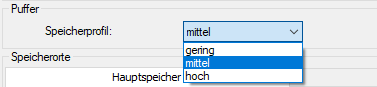Für zeit- und längenbasierte HD-Ablagen besteht die Möglichkeit der Wahl eines Speicherprofils für den Datenpuffer.