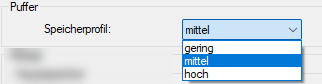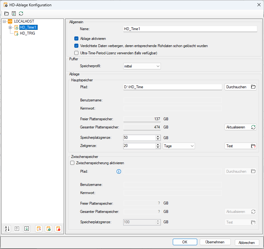 Für zeit- und längenbasierte HD-Ablagen besteht die Möglichkeit der Wahl eines Speicherprofils für den Datenpuffer.