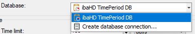 Name of the selected database containing the time period table. By default, ibaHD-Server creates a database for time periods as an internal SQLite database. To use the internal database, select ibaHD TimePeriod DB.
