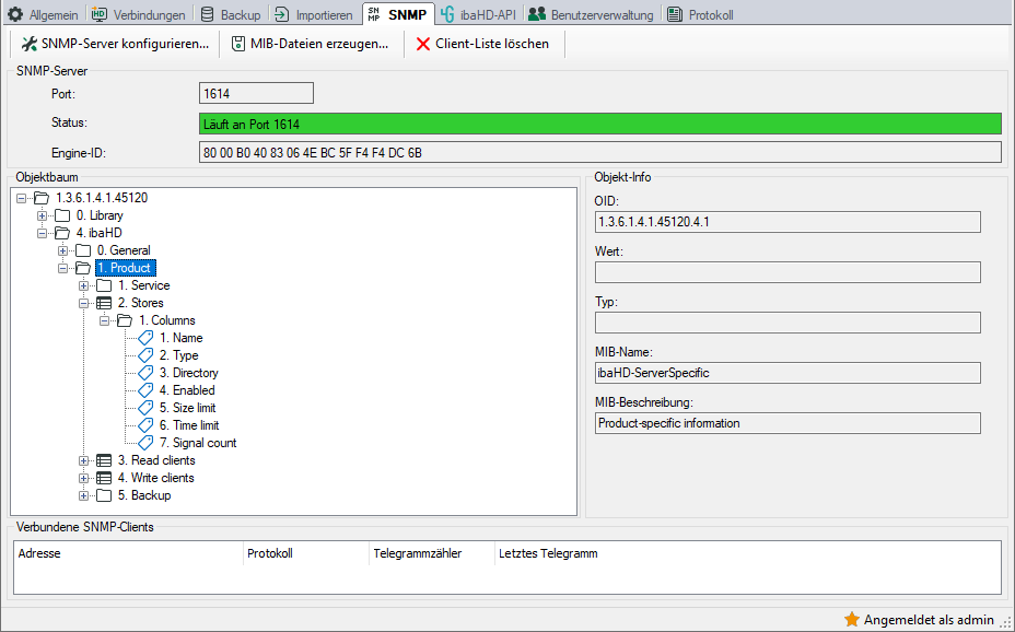 ibaHD-Server verfügt über einen integrierten SNMP-Server.