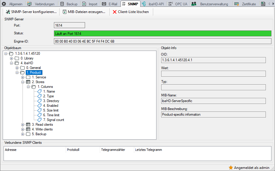 ibaHD-Server verfügt über einen integrierten SNMP-Server.