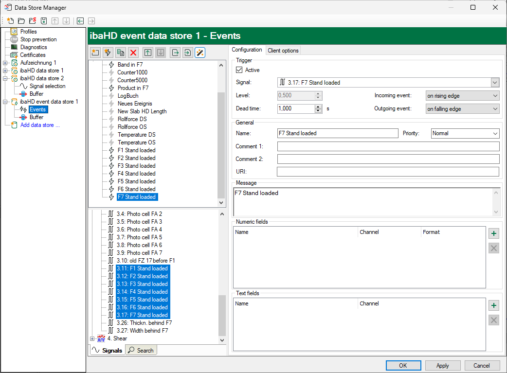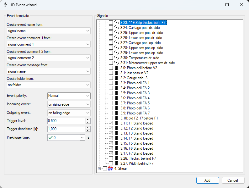 Here you select the signals from which events are to be created using the settings in the "Event template".