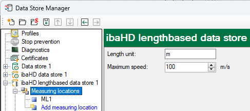 All signals of a measuring location have to use the same length unit and the same maximum speed in the plant. Therefore, those values will only be set once per data store.