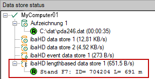 For the product ID you need a text signal. With this text signal the product is denominated, which is currently located at this measuring location. During the measurement, the ID is shown in the window “Data storage status”: