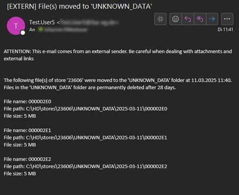 die nicht im Index aufgeführt sind), entfernt und in den Ordner UNKNOWN_DATA verschoben. Mit dem neuen E-Mail-Trigger "Datei(en) verschoben in 'UNKNOWN_DATA'"