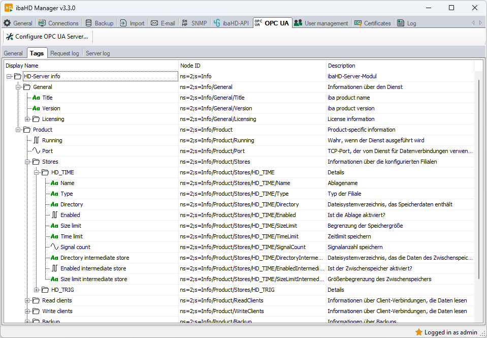 Some nodes may be hidden, depending on the access rights of the current ibaHD Manager user. |