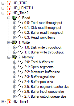 Diese Daten können mit ibaPDA-Client eingesehen werden (ab ibaHD-Server Version 1.4.1). Sie sollen in erster Linie dazu dienen, bei Problemen mit dem HD-Server dem Support spezifische Informationen über die Aktivität des HD-Servers zur Zeit der Störung zu liefern. Es handelt sich um feste Datensätze, die stets zeitbasiert aufgezeichnet werden.