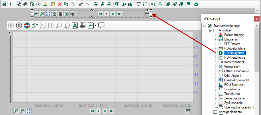 Mit dem Element HD-Navigation können mehrere HD-Trendkurven simultan gesteuert werden.