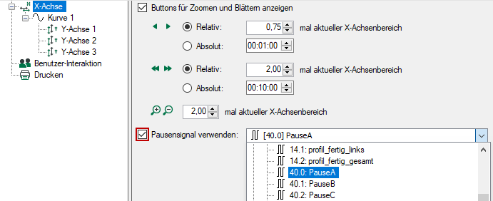 Sowohl für zeit- als auch längenbasierte HD-Trendkurven gibt es in den Eigenschaften die Option "Pausensignal verwenden".
